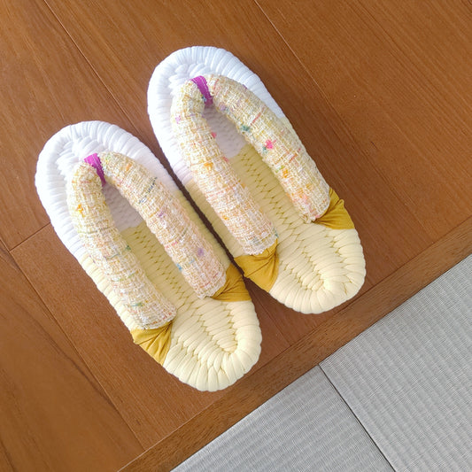 和風ルームシューズ黄色ツィード鼻緒25cm